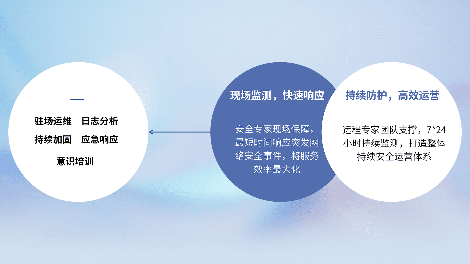 针对客户行业特性,,,提供专属的一站式安全管理服务,,帮助客户全面感知网络空间威胁,,,,通过安全专家的线上、、、、线下防护支持,,实现风险闭环,,,,将安全保障常态化,,,,为客户打造常态化安全运维运营服务。。